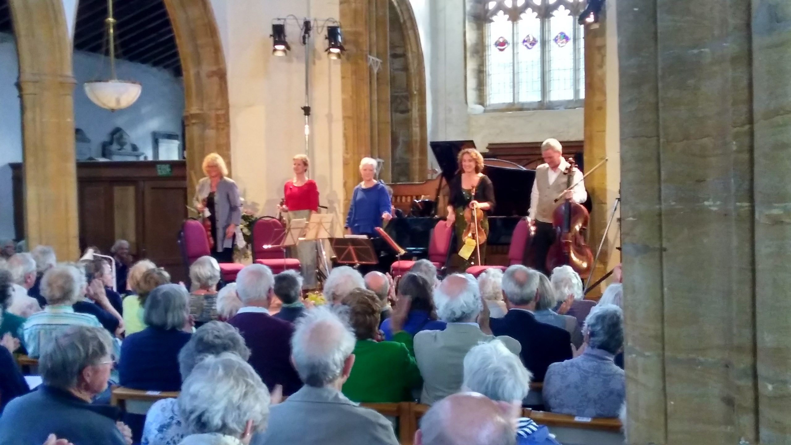 I’ve just returned from the Gaudier Ensemble’s annual festival at Cerne Abbas in Dorset (photo: the last piece of the final concert – the Dvorak piano quintet with (L to R) Marieke Blankestejn, Ulrike Janssen, me, Iris Juda and Henrik Brendstrup).