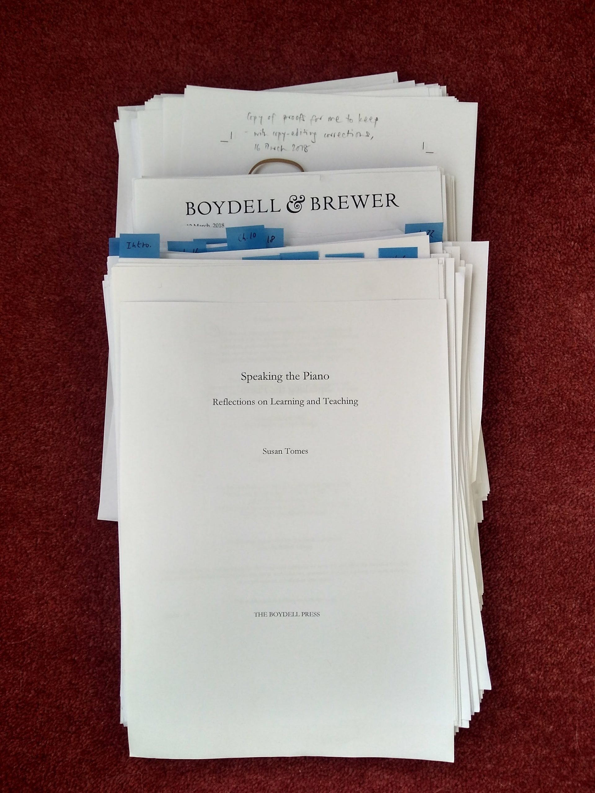 Over the last few days I have been checking the proofs of my new book, Speaking the Piano, due out in June from Boydell Press (see photo).