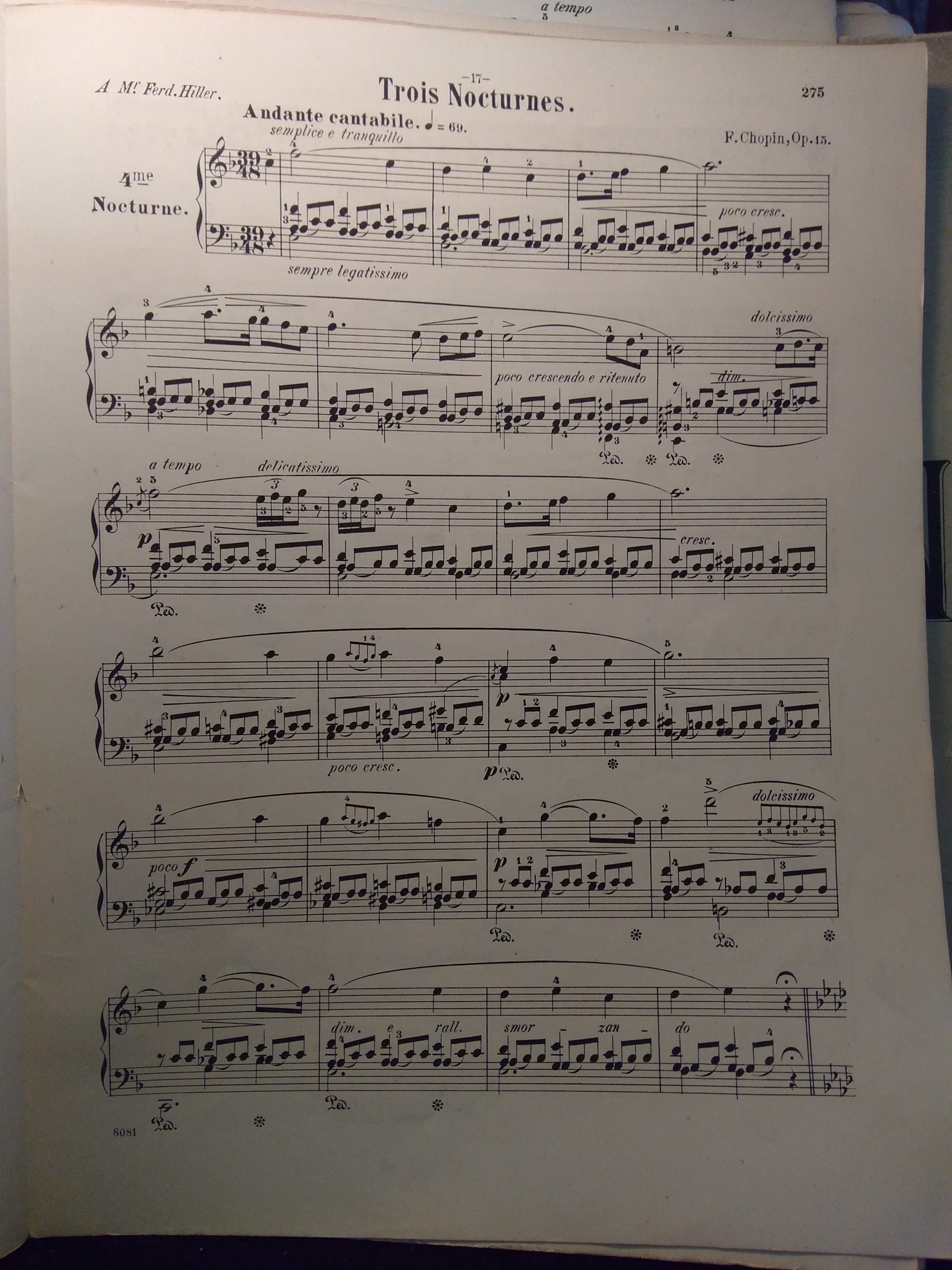 Today I was studying the F major Nocturne, which I do know by ear but had never tried to learn. I got to know it as a child when the older boy who had his piano lesson before me was learning it. Every week I would go in for my lesson and listen while he received tuition on this Nocturne, which he was preparing for a competition.