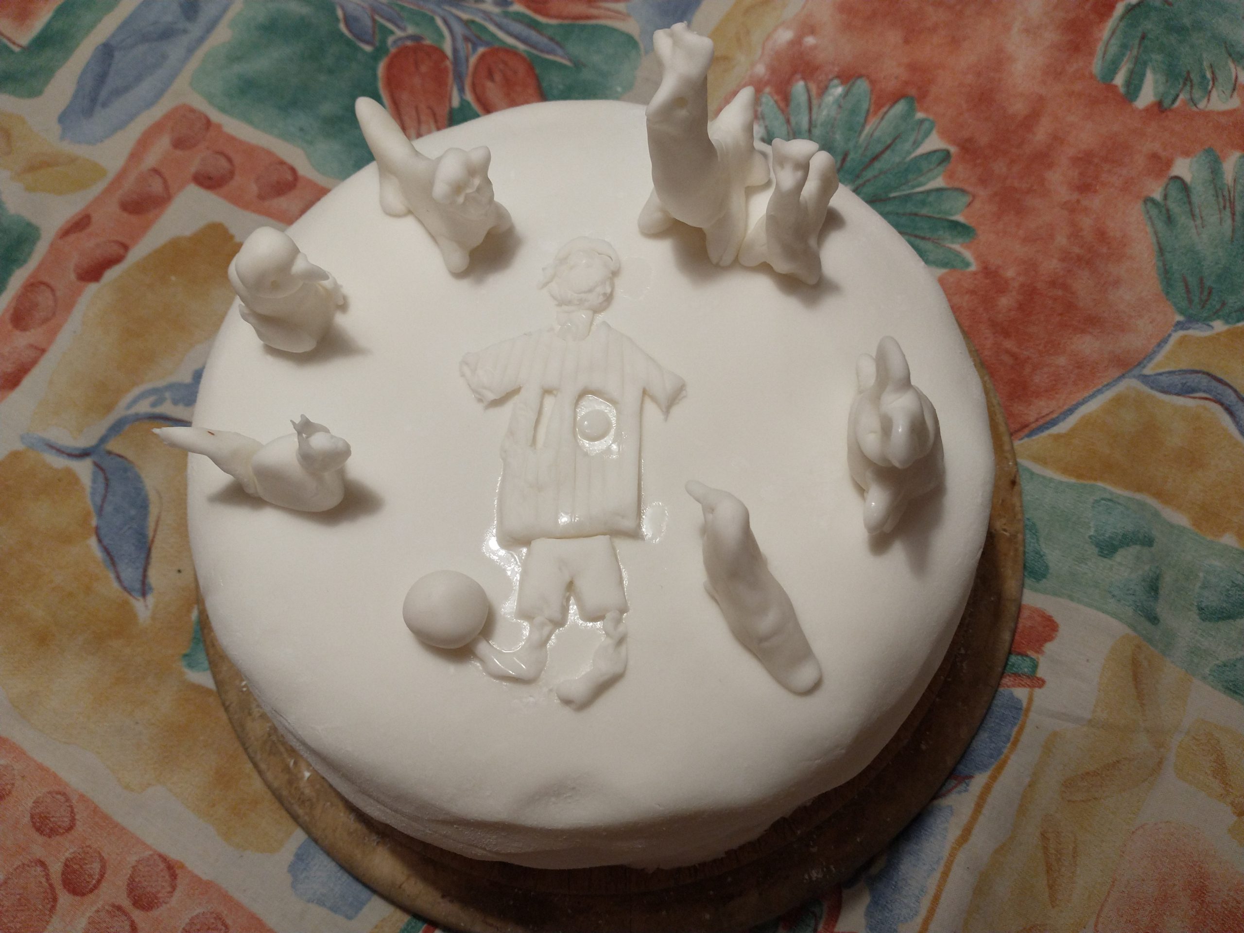 This year, the football World Cup just having finished with Argentina becoming the champions, we made Lionel Messi the centrepiece of our cake in his number 10 stripey shirt. And an assortment of sugary giraffes, bears, cats, and birds clustered around him admiringly (see photo).
