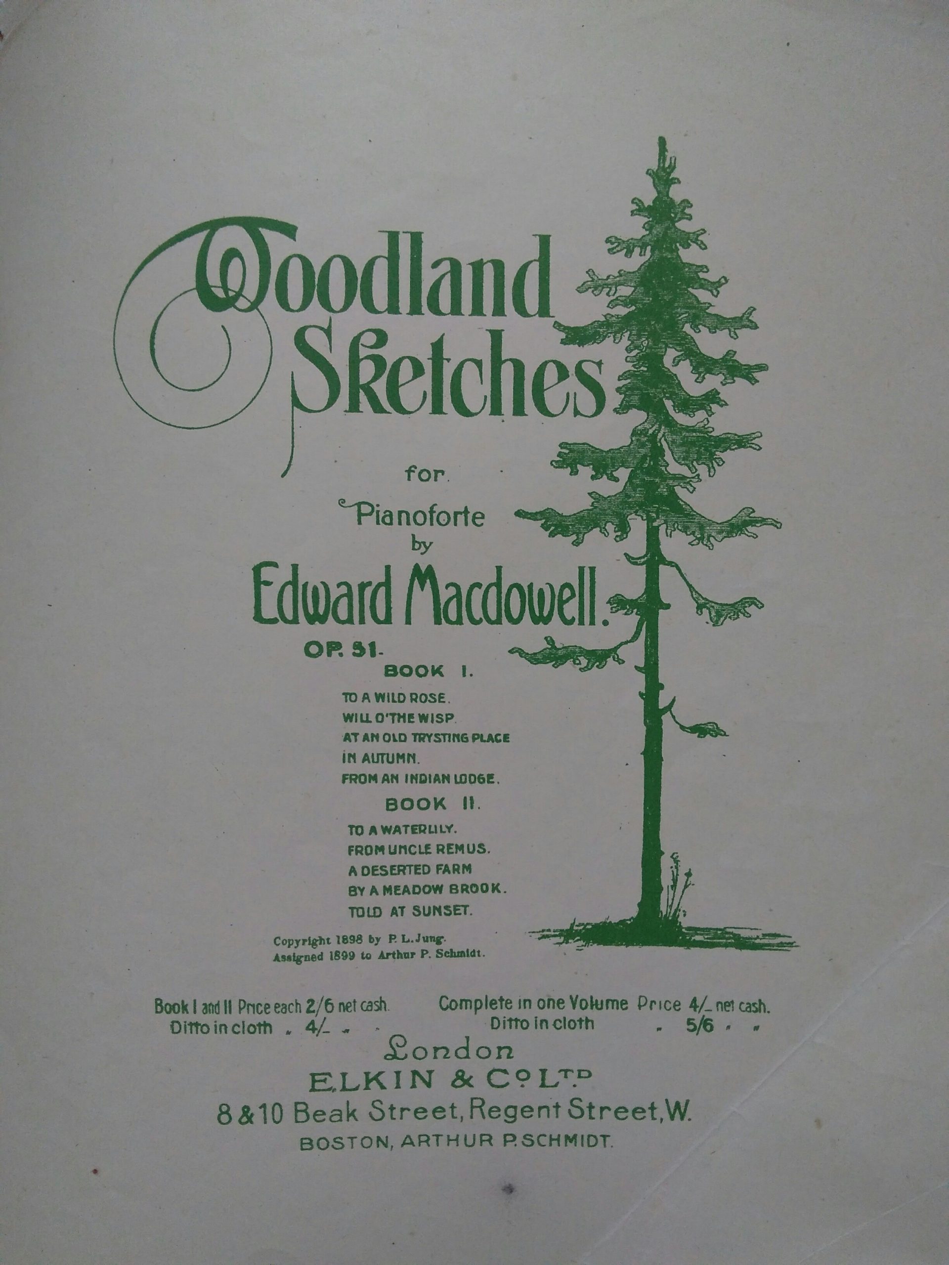 Over the years I’ve acquired various bits of piano music as gifts when friends were throwing away stuff they never played. That’s how I came to have Edward MacDowell’s Woodland Sketches. Most people know the first number, ‘To a Wild Rose’, but the rest of the set is obscure, at least here in the UK.