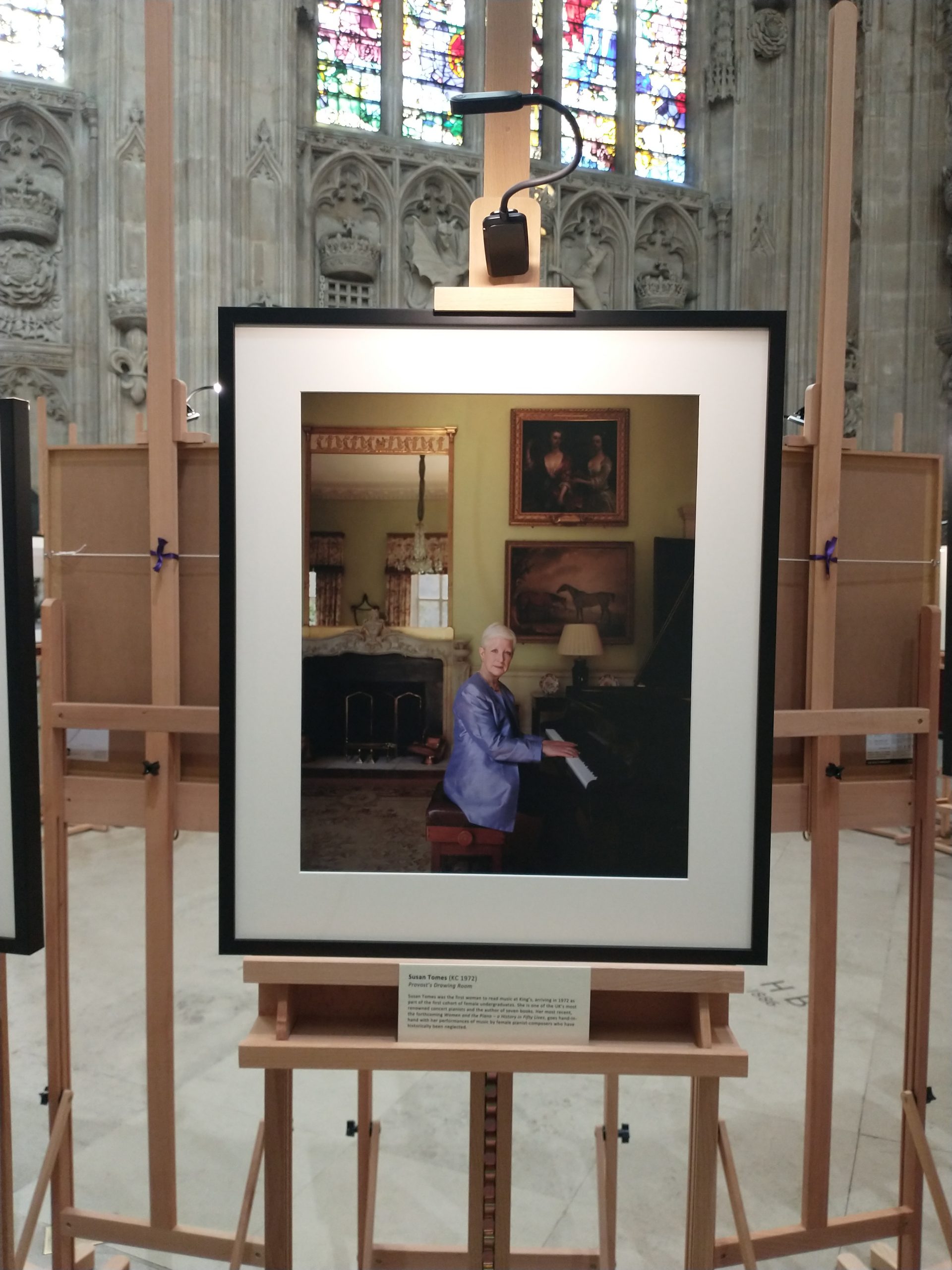 As well as playing a concert, I was also there to see the opening of a special exhibition: Fifty Portraits, a major commission for photographer Jooney Woodward, winner of the Taylor Wessing Photo Portrait Prize in 2011. King’s had chosen 50 women to represent various aspects of college life over the fifty years. Goodness knows how they made the selection: to be honest, there must have been hundreds of good candidates. But anyway, I was happy to have my portrait in the exhibition. The photos were displayed in the famous Chapel, where the exhibition will stay for a few months, and will then become part of the college’s archive, hopefully to be displayed somewhere around the college itself.