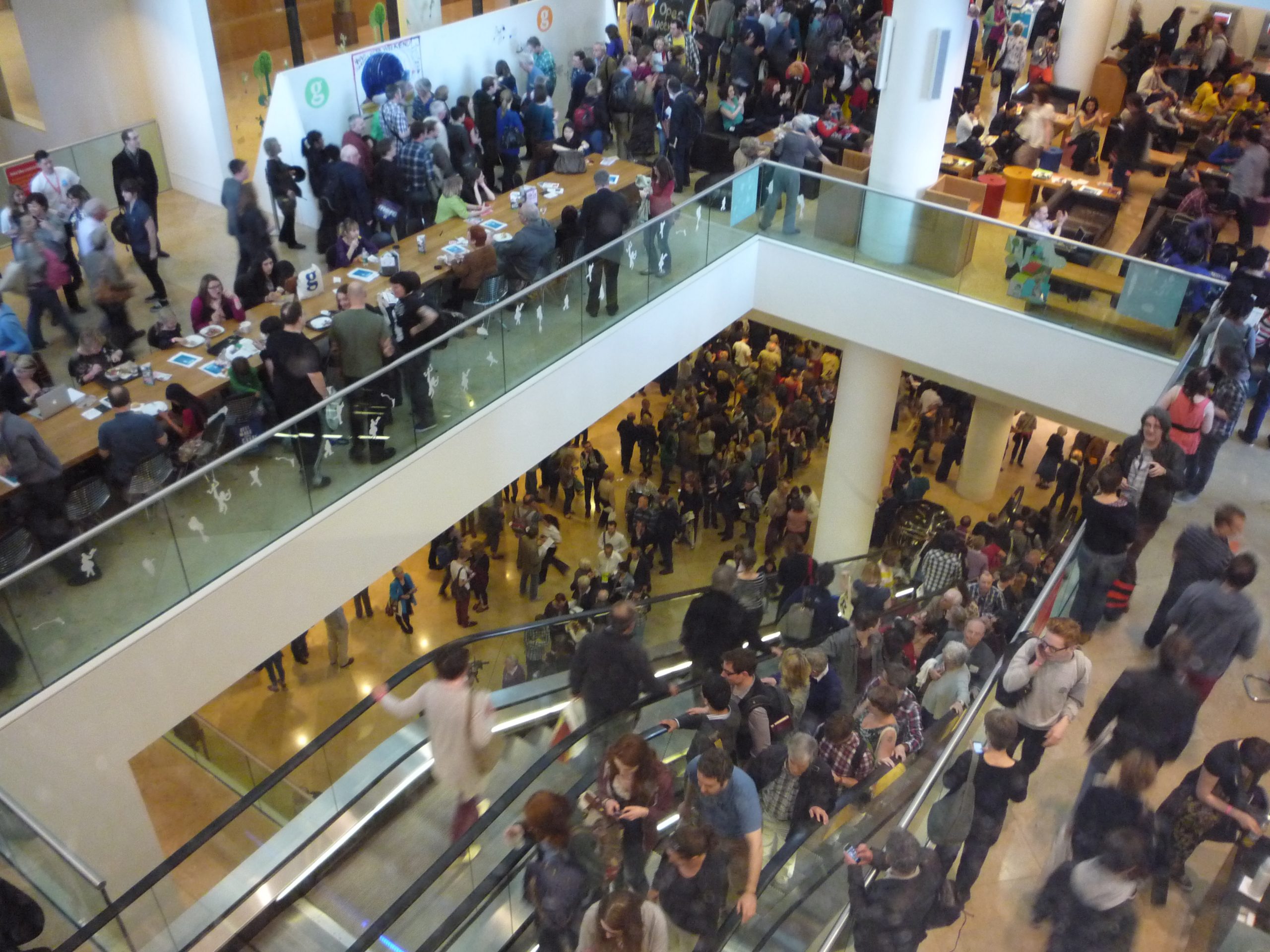 King’s Place, the building behind King’s Cross which houses two concert halls and also the Guardian offices, was heaving today for the first Guardian Open Weekend (see photo). It was great to see the place so full, and full of such interesting-looking people too.