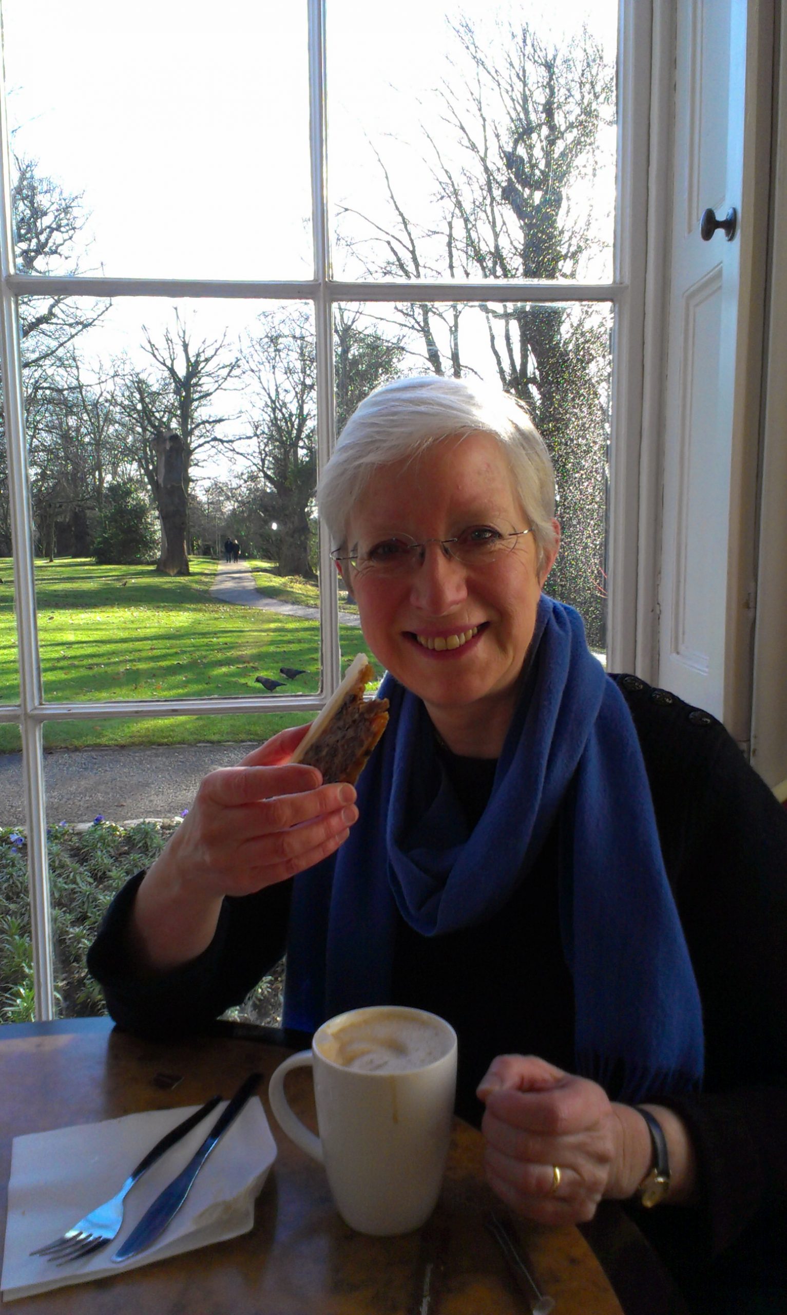 Here I am on New Year’s Day, eating home-made Christmas cake on an outing to Richmond Park, and enjoying a rare and sudden burst of sunshine.