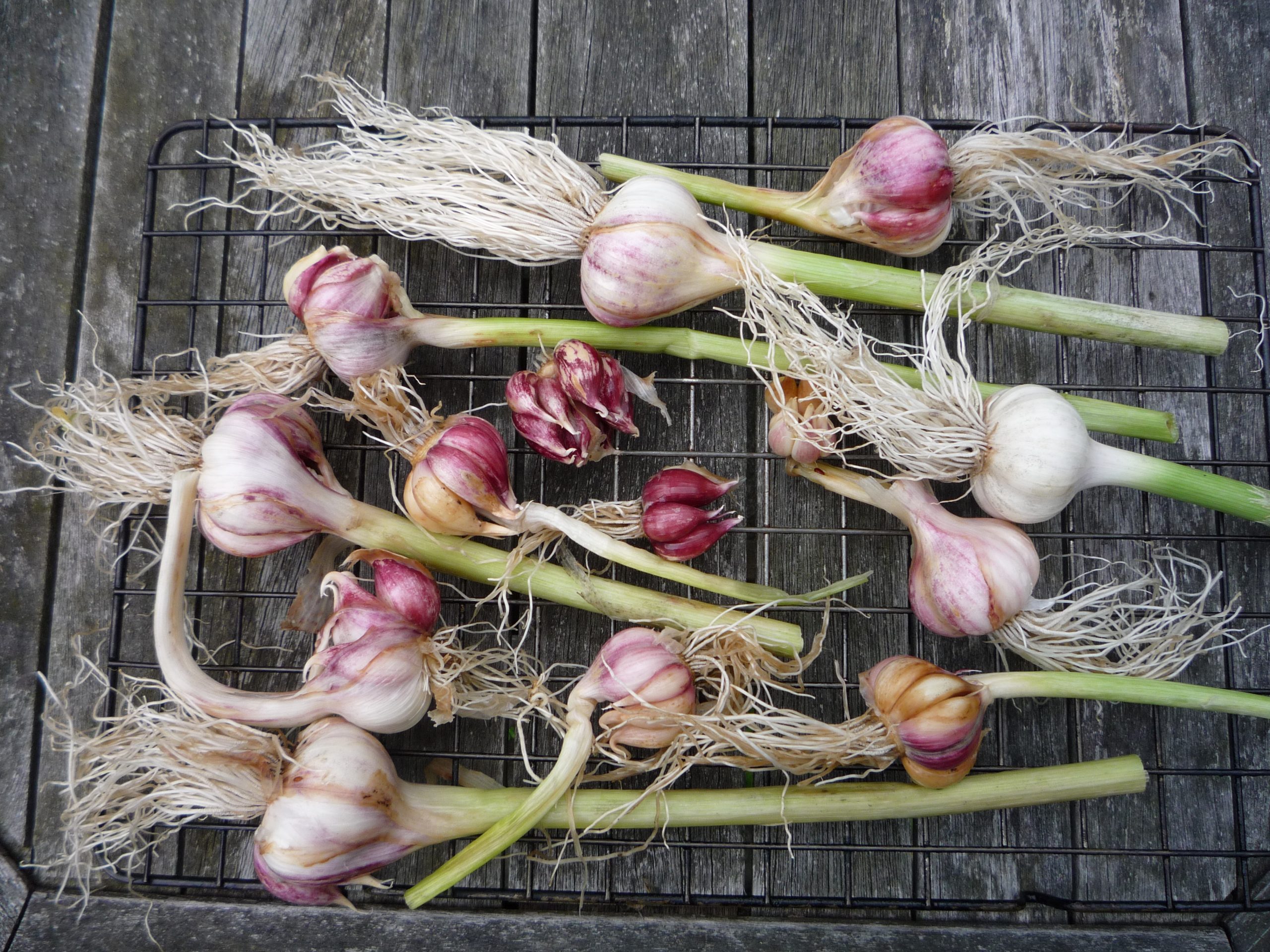 When we got home, we divided our garlic bulbs into single cloves and planted them in the back garden. Lo and behold, a year later, we have our own crop of pink garlic – somewhat sodden after all the rain, but aromatic and pleasingly reminiscent of the French countryside.