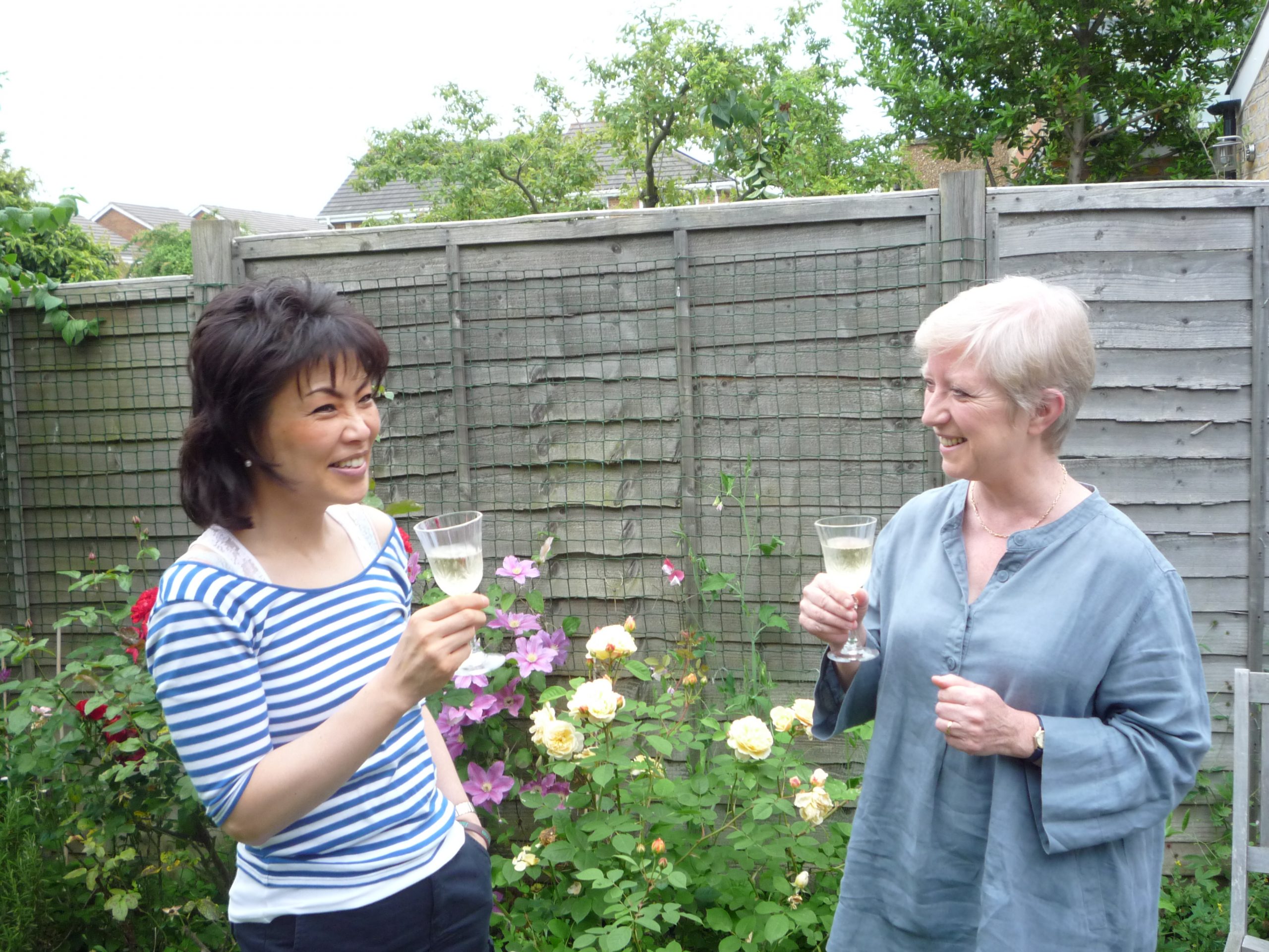 Here we are in the garden last night, toasting the success of Noriko’s translation. I am so glad it has been translated by a musician.