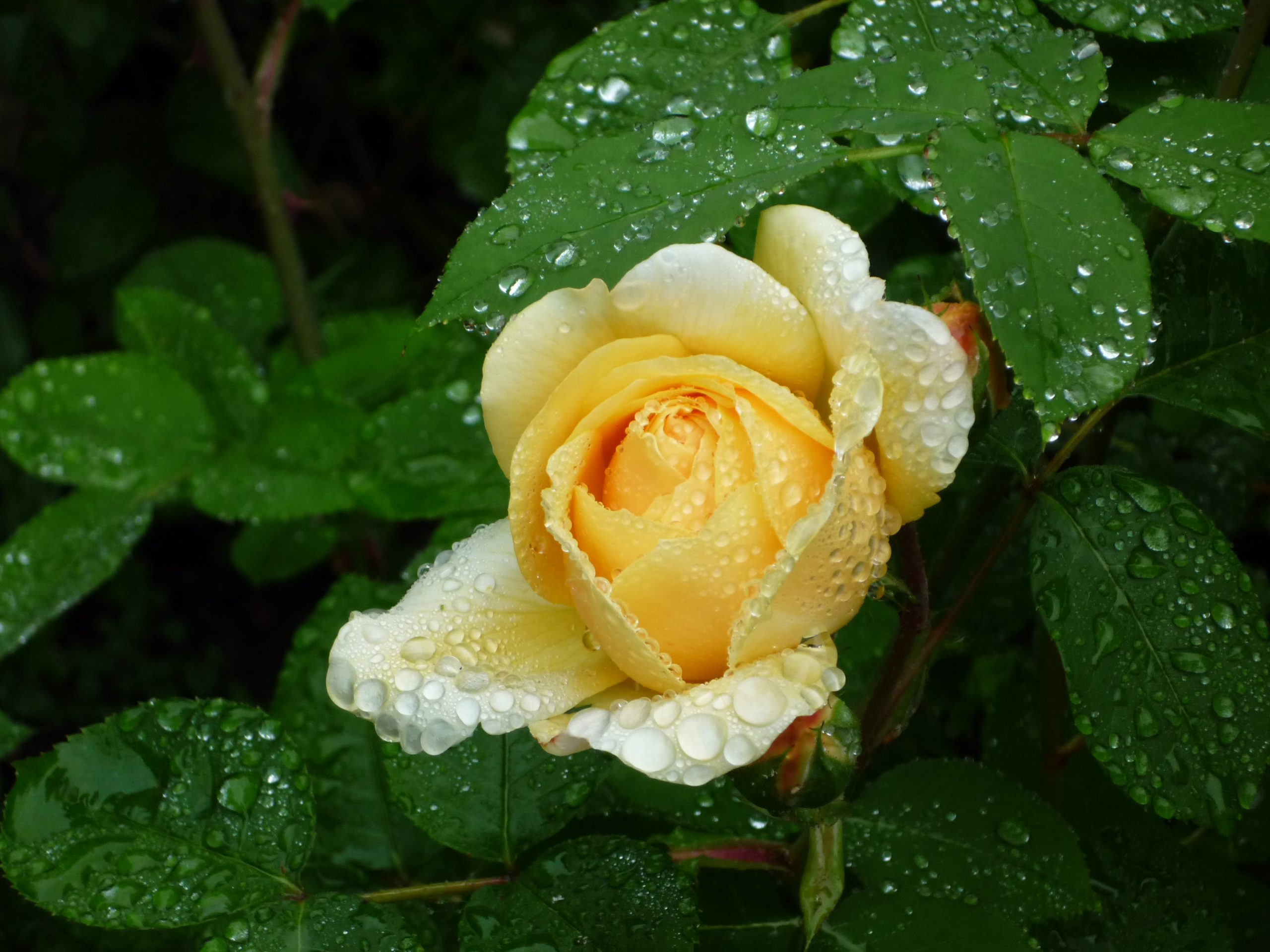 Lots of new roses came out just in time to be flattened and waterlogged by today’s downpour. I caught this beautiful yellow rose just as the rain was starting.