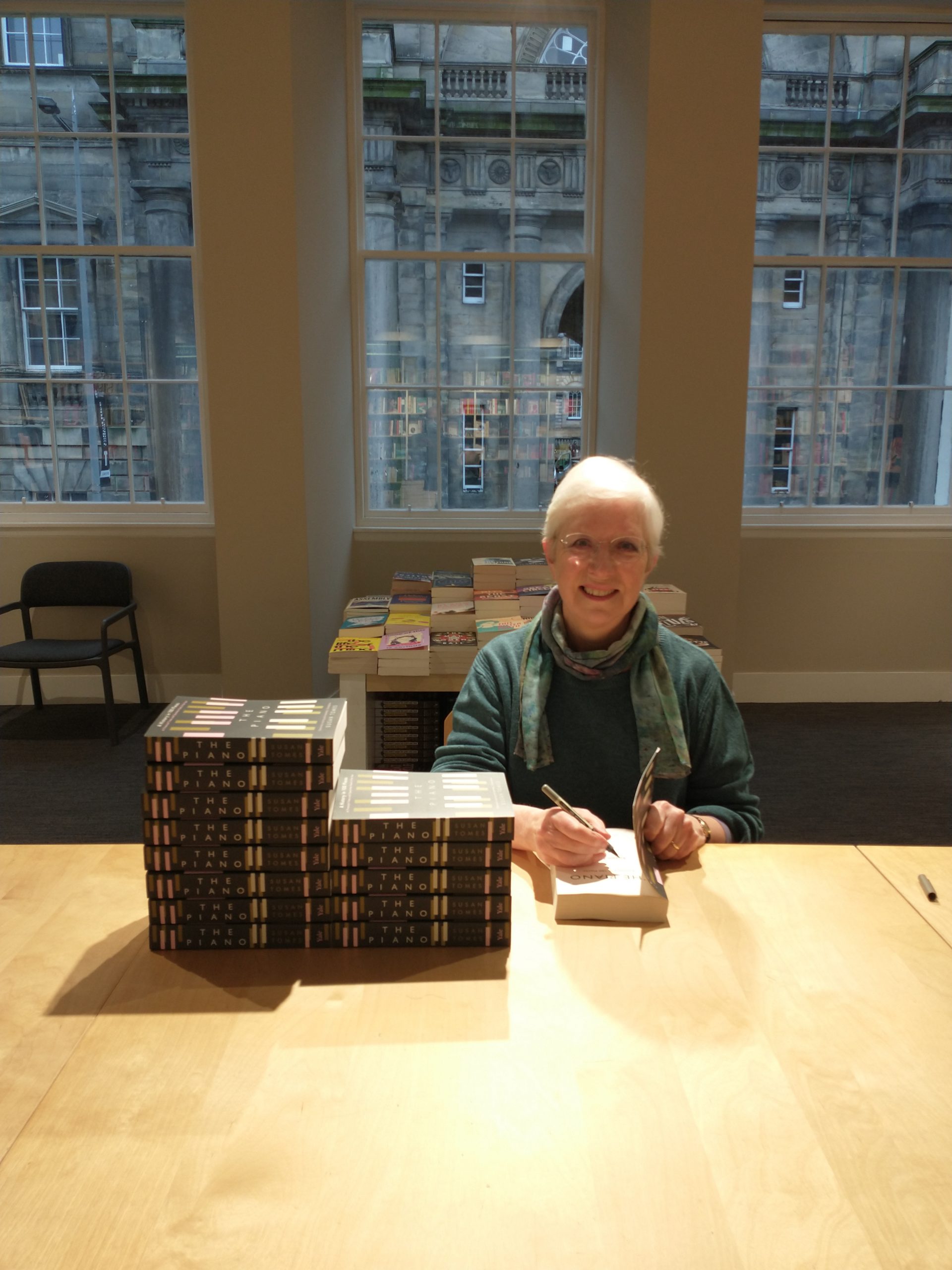 Anyway, to mark the official publication date I was invited to Blackwell’s Bookshop in Edinburgh to sign some copies. The bookshop is in the process of being refurbished, to excellent effect. I enjoyed sitting at a table in the upper room with a fine view behind me of Old College, Edinburgh University.
