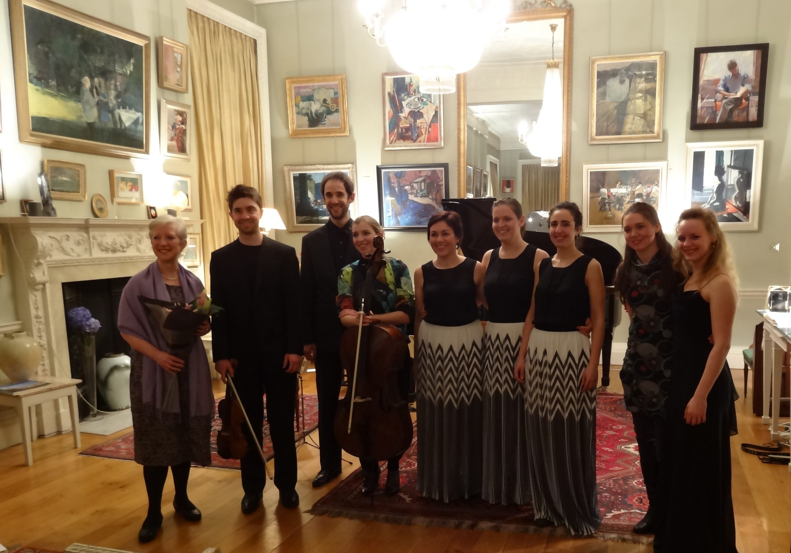 Left to right: me; Perceval Gilles, Pierre-Kaloyann Atanassov, Sarah Sultan (Trio Atanassov); Giuseppina Coni, Giulia Cerra, Valeria Sirangelo (Trio Eclettica); Vashti Hunter, Veronika Kopjova (cello and piano duo)